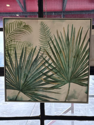 Square Silver Framed Canvas Palm Leaves Wall Art [MHF]