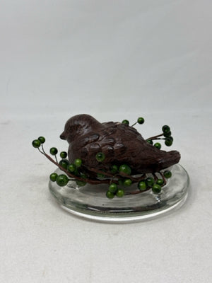 Brown Bird Candle with Beaded Candle Ring & Glass Tray