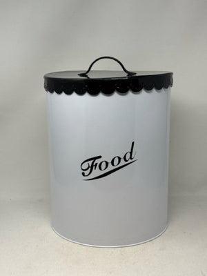 Tall White Metal Black Lid Food Bin