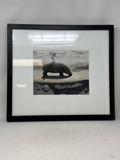 17"H x 18.5"W Black Framed Hippopotamus Wall Art