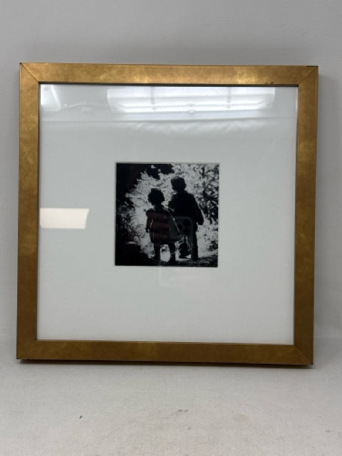 13.5" Square Gold Framed Black & White Little Girl & Boy Wall Art