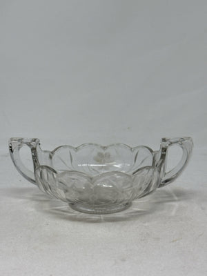 Vintage Clear Etched Glass Nappy Bowl with Double Handle