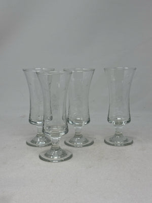 Set of 4 Vintage Etched Stemmed Cordial Glasses