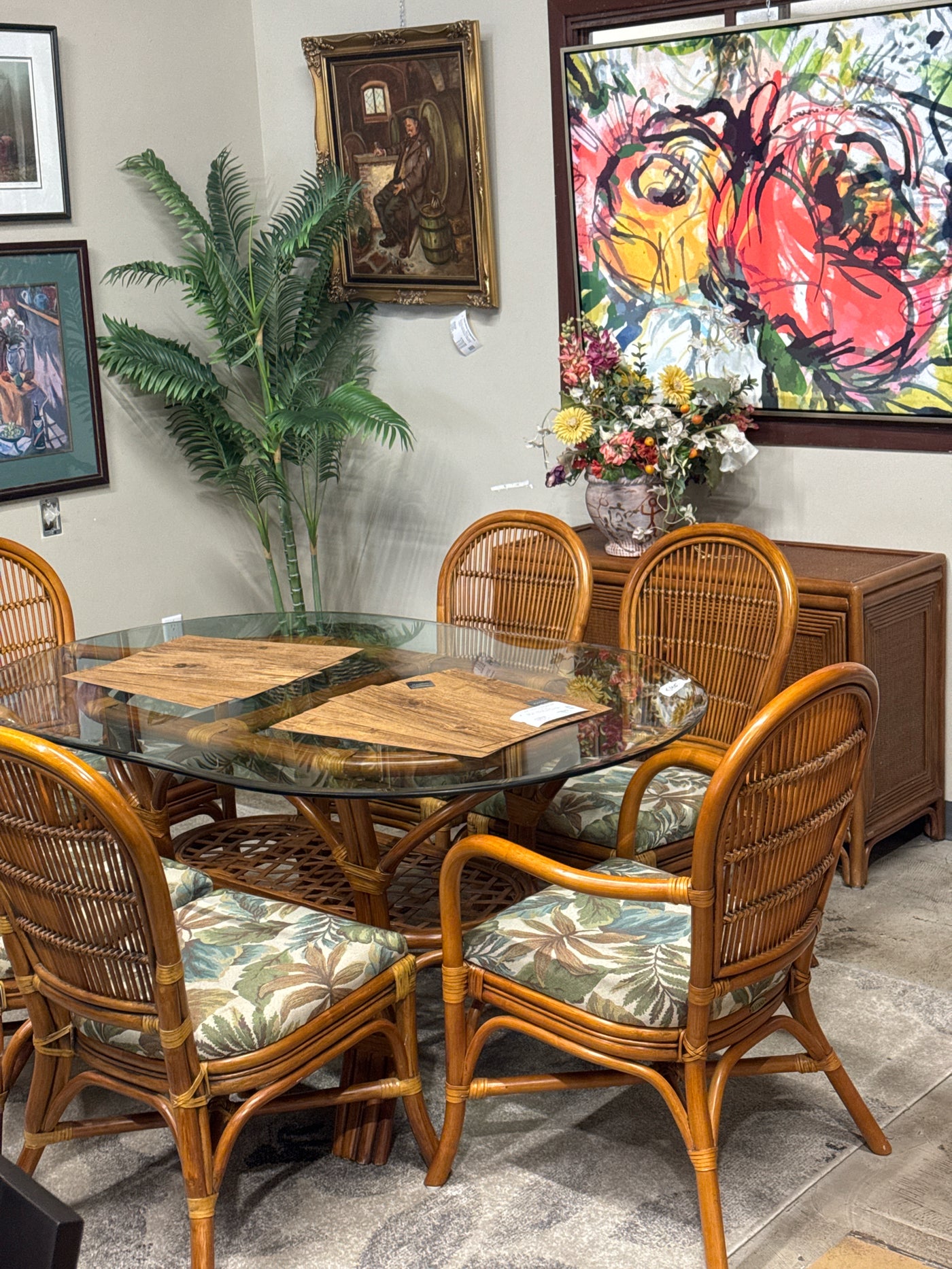 7 Piece Ratan Dining Table & 6 Chairs