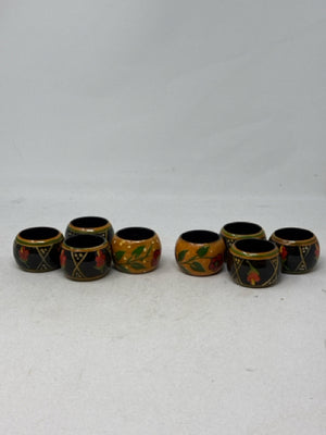 Set of 8 Hand Painted Folk Art Napkin Rings