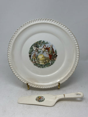 Harker Pottery Co. 22kt Gold Trim Godey Print Cake Plate & Server