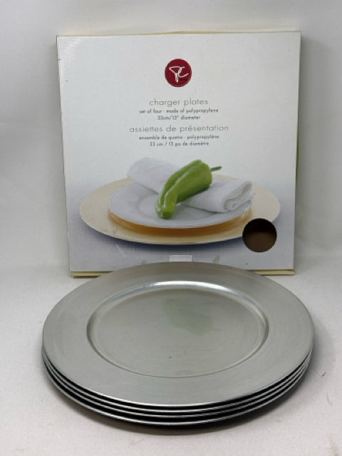 Set of 4 - 13" Silver Polypropylene Charger Plates