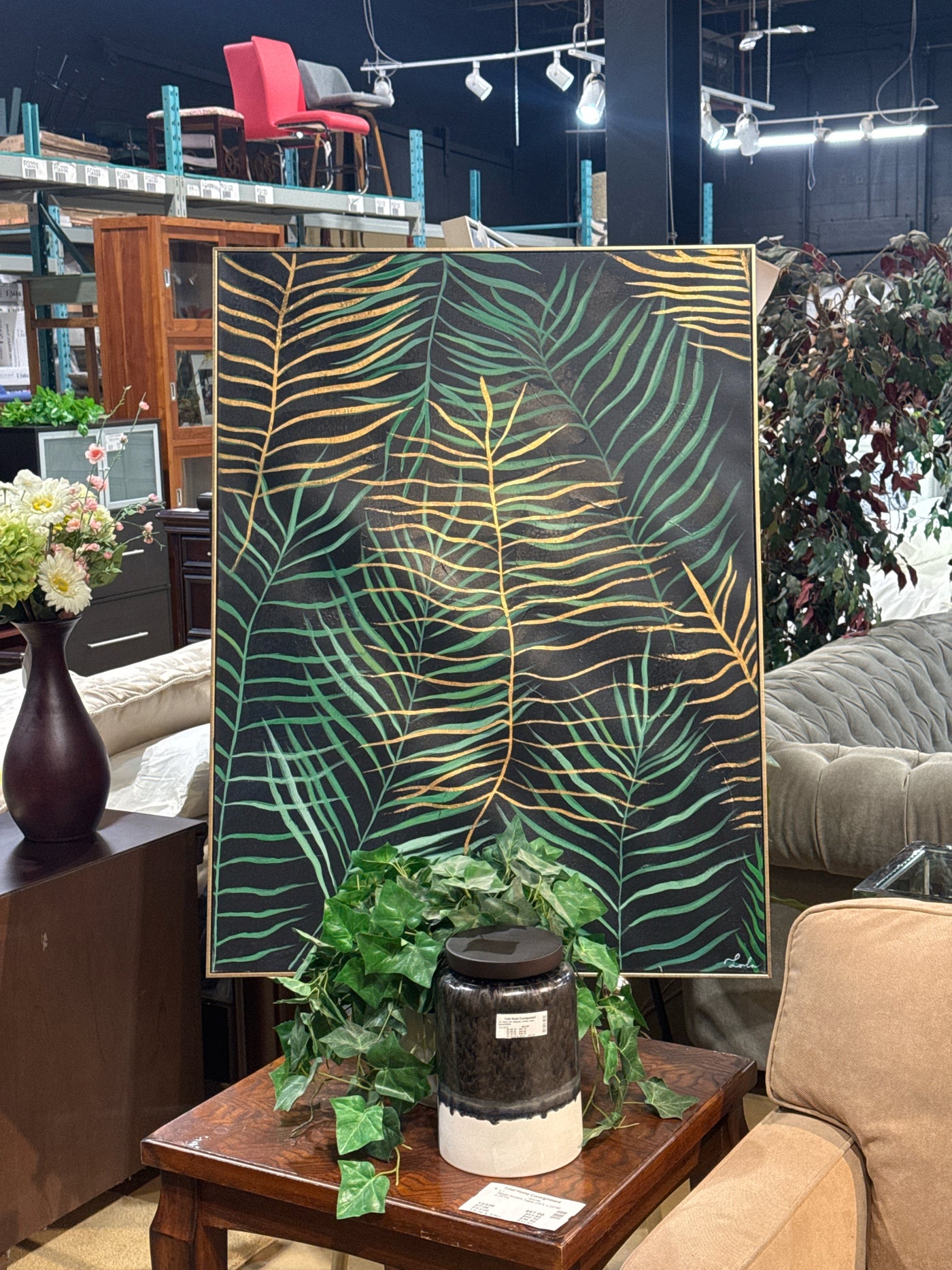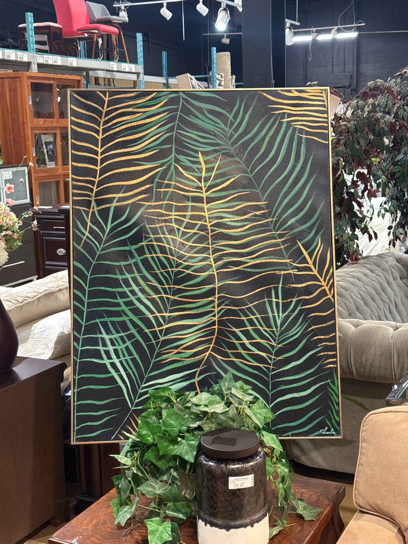 {"id":8442693189769,"title":"Gold Framed Canvas Wall Art [MHF]","handle":"gold-framed-canvas-wall-art-mhf","description":"3'W x 4'H Gold Framed Canvas Wall Art (Black\/Green\/Gold Fern Leaves)\u003cbr\u003e\u003cbr\u003e\n\u003cul\u003e\n\u003cli\u003e\n\u003cb\u003eModel Home Item\u003c\/b\u003e = From Richcraft Homes\u003c\/li\u003e\n\u003cbr\u003e\u003cbr\u003e\n\u003c\/ul\u003e\n\u003cb\u003e Item Number: \u003c\/b\u003e\n741-4488\u003cbr\u003e\u003cbr\u003e\n\u003cb\u003e Item ID: \u003c\/b\u003e\n93370\u003cbr\u003e\u003cbr\u003e\n\u003cb\u003e Category: \u003c\/b\u003e\nArt\u003cbr\u003e\u003cbr\u003e","published_at":"2026-02-12T12:47:01-05:00","created_at":"2026-02-06T15:21:42-05:00","vendor":"Total Home Consignment","type":"Art","tags":["1860 Bank Street","closet_1741","From Richcraft Homes"],"price":7565,"price_min":7565,"price_max":7565,"available":true,"price_varies":false,"compare_at_price":null,"compare_at_price_min":0,"compare_at_price_max":0,"compare_at_price_varies":false,"variants":[{"id":45240469520521,"title":"Default Title","option1":"Default Title","option2":null,"option3":null,"sku":"93370","requires_shipping":true,"taxable":true,"featured_image":null,"available":true,"name":"Gold Framed Canvas Wall Art [MHF]","public_title":null,"options":["Default Title"],"price":7565,"weight":0,"compare_at_price":null,"inventory_management":"shopify","barcode":"00093370","requires_selling_plan":false,"selling_plan_allocations":[]}],"images":["\/\/totalhomeconsignment.com\/cdn\/shop\/files\/0176ffa4135cdacf25dcd51fcfb42e7c_487eba4b-5ab6-4aec-b42d-975f21af5f6a.jpg?v=1770918425","\/\/totalhomeconsignment.com\/cdn\/shop\/files\/3a0f29b38c2478970752c77e536145c1_c858fa3f-759b-4e65-a0c0-6ab24f955e0f.jpg?v=1770918425","\/\/totalhomeconsignment.com\/cdn\/shop\/files\/1b029a56ab3270a7e1fe5713f5f39787_e26922a8-2ca4-4bb7-9b02-89aeb264cb2a.jpg?v=1770918425"],"featured_image":"\/\/totalhomeconsignment.com\/cdn\/shop\/files\/0176ffa4135cdacf25dcd51fcfb42e7c_487eba4b-5ab6-4aec-b42d-975f21af5f6a.jpg?v=1770918425","options":["Title"],"media":[{"alt":null,"id":29653899837577,"position":1,"preview_image":{"aspect_ratio":0.75,"height":2048,"width":1536,"src":"\/\/totalhomeconsignment.com\/cdn\/shop\/files\/0176ffa4135cdacf25dcd51fcfb42e7c_487eba4b-5ab6-4aec-b42d-975f21af5f6a.jpg?v=1770918425"},"aspect_ratio":0.75,"height":2048,"media_type":"image","src":"\/\/totalhomeconsignment.com\/cdn\/shop\/files\/0176ffa4135cdacf25dcd51fcfb42e7c_487eba4b-5ab6-4aec-b42d-975f21af5f6a.jpg?v=1770918425","width":1536},{"alt":null,"id":29653899870345,"position":2,"preview_image":{"aspect_ratio":0.75,"height":2048,"width":1536,"src":"\/\/totalhomeconsignment.com\/cdn\/shop\/files\/3a0f29b38c2478970752c77e536145c1_c858fa3f-759b-4e65-a0c0-6ab24f955e0f.jpg?v=1770918425"},"aspect_ratio":0.75,"height":2048,"media_type":"image","src":"\/\/totalhomeconsignment.com\/cdn\/shop\/files\/3a0f29b38c2478970752c77e536145c1_c858fa3f-759b-4e65-a0c0-6ab24f955e0f.jpg?v=1770918425","width":1536},{"alt":null,"id":29653899903113,"position":3,"preview_image":{"aspect_ratio":0.75,"height":2048,"width":1536,"src":"\/\/totalhomeconsignment.com\/cdn\/shop\/files\/1b029a56ab3270a7e1fe5713f5f39787_e26922a8-2ca4-4bb7-9b02-89aeb264cb2a.jpg?v=1770918425"},"aspect_ratio":0.75,"height":2048,"media_type":"image","src":"\/\/totalhomeconsignment.com\/cdn\/shop\/files\/1b029a56ab3270a7e1fe5713f5f39787_e26922a8-2ca4-4bb7-9b02-89aeb264cb2a.jpg?v=1770918425","width":1536}],"requires_selling_plan":false,"selling_plan_groups":[],"content":"3'W x 4'H Gold Framed Canvas Wall Art (Black\/Green\/Gold Fern Leaves)\u003cbr\u003e\u003cbr\u003e\n\u003cul\u003e\n\u003cli\u003e\n\u003cb\u003eModel Home Item\u003c\/b\u003e = From Richcraft Homes\u003c\/li\u003e\n\u003cbr\u003e\u003cbr\u003e\n\u003c\/ul\u003e\n\u003cb\u003e Item Number: \u003c\/b\u003e\n741-4488\u003cbr\u003e\u003cbr\u003e\n\u003cb\u003e Item ID: \u003c\/b\u003e\n93370\u003cbr\u003e\u003cbr\u003e\n\u003cb\u003e Category: \u003c\/b\u003e\nArt\u003cbr\u003e\u003cbr\u003e"}