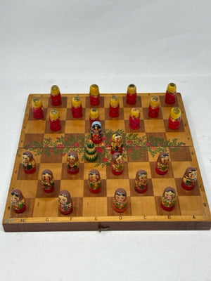 Vintage Matryoshka Russian Doll Checker Set in Folding Storage Case
