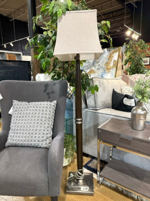 Adjustable Wood/Brushed Silver Metal Base Floor Lamp