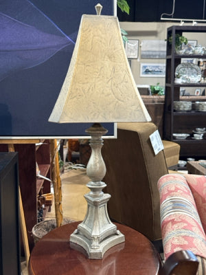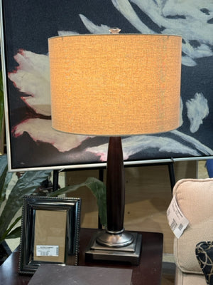 Pair of Costco Adjustable Wood/Brushed Silver Metal Base Table Lamps