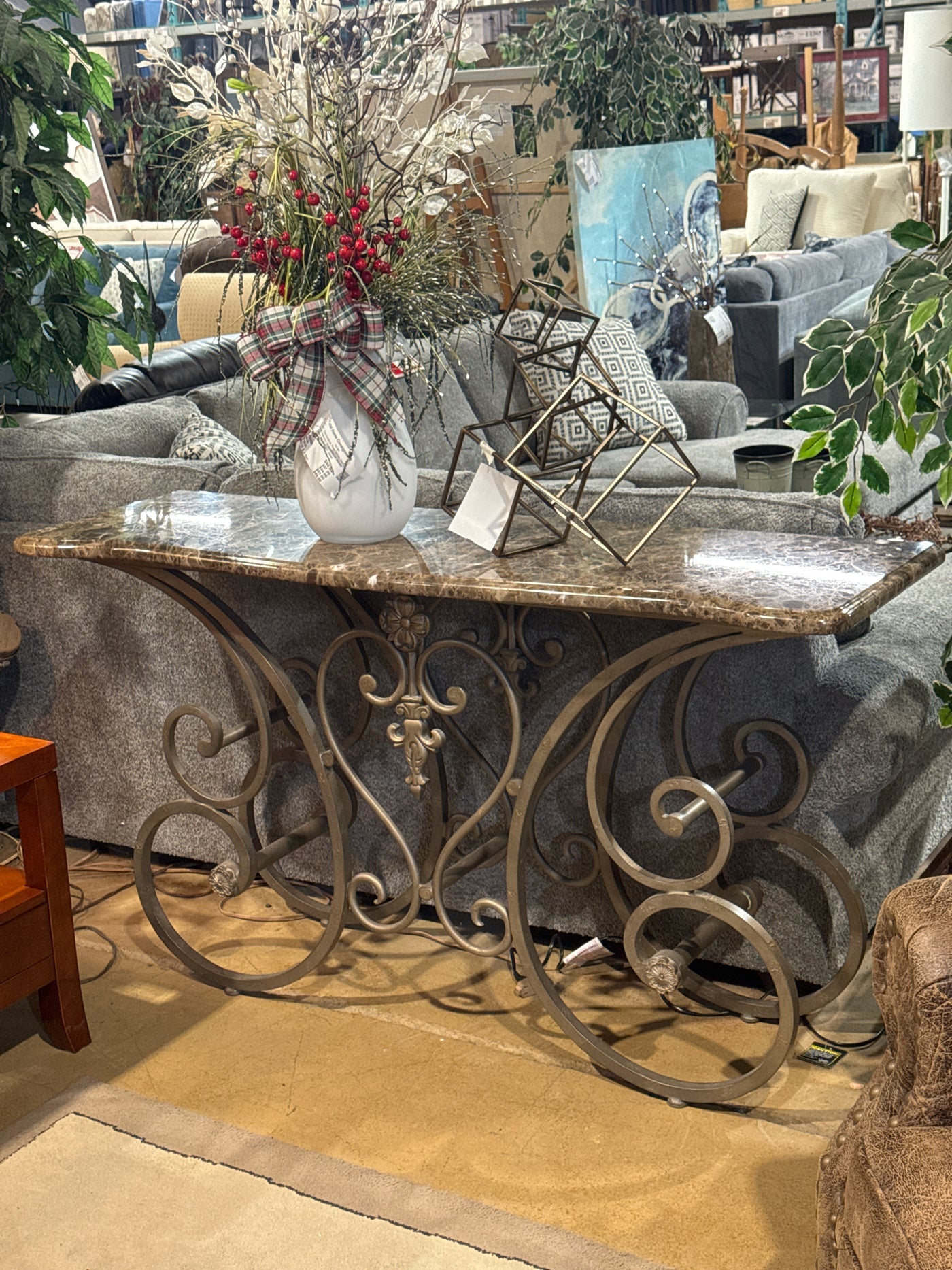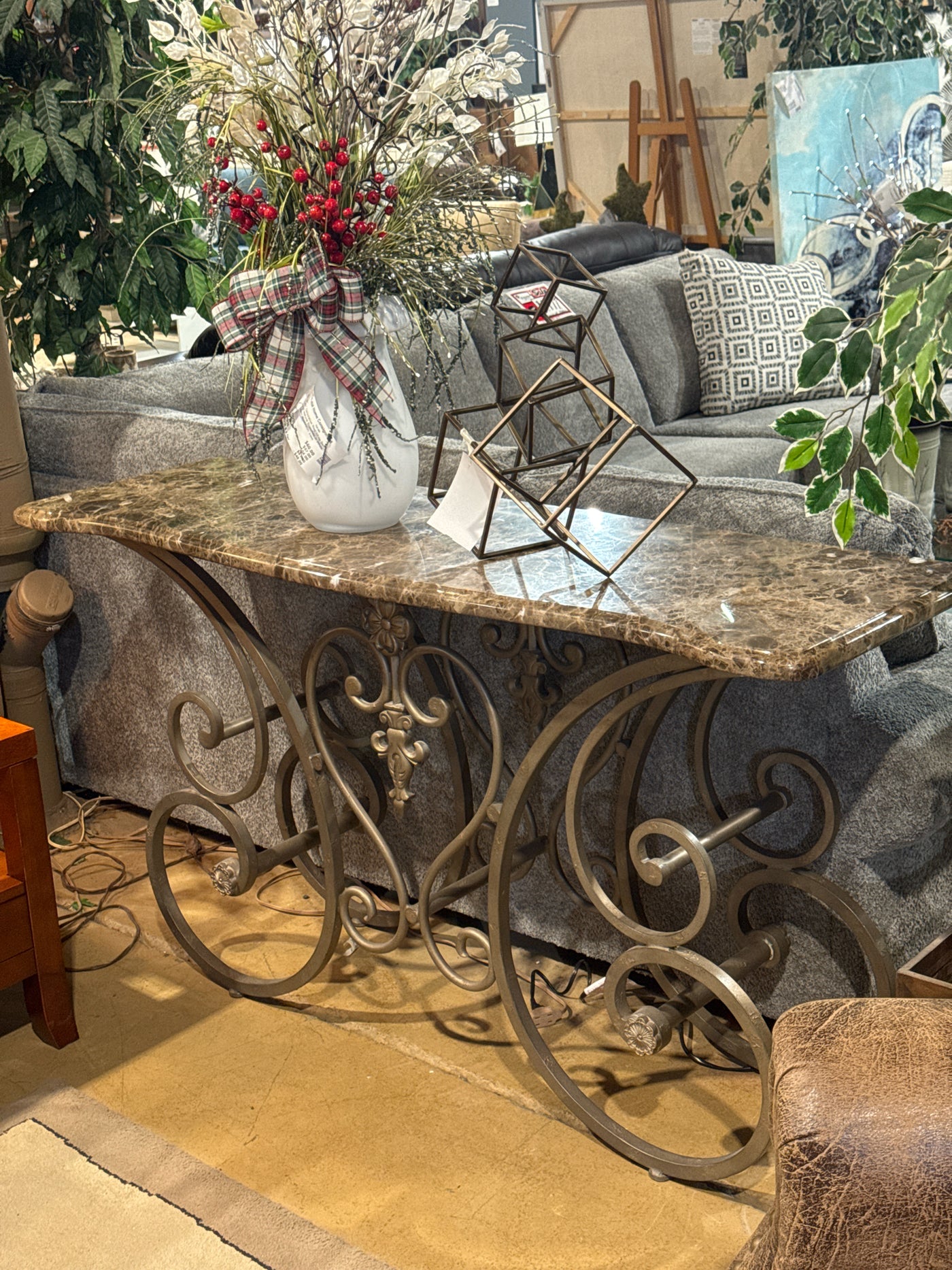 {"id":8385639841929,"title":"Marble Top With Wrought Iron Base Console Table","handle":"marble-top-with-wrought-iron-base-console-table","description":"Marble Top With Wrought Iron Base Console Table (60\"L x 18\"W x 34\"H)\u003cbr\u003e\u003cbr\u003e\n\u003cul\u003e\n\u003cbr\u003e\u003cbr\u003e\n\u003c\/ul\u003e\n\u003cb\u003e Item Number: \u003c\/b\u003e\n6103-3\u003cbr\u003e\u003cbr\u003e\n\u003cb\u003e Item ID: \u003c\/b\u003e\n93249\u003cbr\u003e\u003cbr\u003e\n\u003cb\u003e Category: \u003c\/b\u003e\nSofa Tables \u0026amp; Consoles\u003cbr\u003e\u003cbr\u003e","published_at":"2026-02-27T12:42:05-05:00","created_at":"2025-12-11T14:49:54-05:00","vendor":"Total Home Consignment","type":"Sofa Tables \u0026 Consoles","tags":["1860 Bank Street","Clearance","closet_7102"],"price":23920,"price_min":23920,"price_max":23920,"available":true,"price_varies":false,"compare_at_price":null,"compare_at_price_min":0,"compare_at_price_max":0,"compare_at_price_varies":false,"variants":[{"id":45049447743625,"title":"Default Title","option1":"Default Title","option2":null,"option3":null,"sku":"93249","requires_shipping":true,"taxable":true,"featured_image":null,"available":true,"name":"Marble Top With Wrought Iron Base Console Table","public_title":null,"options":["Default Title"],"price":23920,"weight":0,"compare_at_price":null,"inventory_management":"shopify","barcode":"00093249","requires_selling_plan":false,"selling_plan_allocations":[]}],"images":["\/\/totalhomeconsignment.com\/cdn\/shop\/files\/01c1969b79057a9ffe1424fff94f19e3_82454bc5-aada-4fb7-a5a9-311181b2feb1.jpg?v=1772214128","\/\/totalhomeconsignment.com\/cdn\/shop\/files\/6966862f4f29b1172d4b613b15365993_14b38ff8-a4bd-45f9-b40f-7eb26e264fc3.jpg?v=1772214128","\/\/totalhomeconsignment.com\/cdn\/shop\/files\/335d8bddbee30e03a1d89a4f151255b9_a8cb689c-ec13-4683-b87f-ae74b9d04fda.jpg?v=1772214128"],"featured_image":"\/\/totalhomeconsignment.com\/cdn\/shop\/files\/01c1969b79057a9ffe1424fff94f19e3_82454bc5-aada-4fb7-a5a9-311181b2feb1.jpg?v=1772214128","options":["Title"],"media":[{"alt":null,"id":29883432272009,"position":1,"preview_image":{"aspect_ratio":0.75,"height":2048,"width":1536,"src":"\/\/totalhomeconsignment.com\/cdn\/shop\/files\/01c1969b79057a9ffe1424fff94f19e3_82454bc5-aada-4fb7-a5a9-311181b2feb1.jpg?v=1772214128"},"aspect_ratio":0.75,"height":2048,"media_type":"image","src":"\/\/totalhomeconsignment.com\/cdn\/shop\/files\/01c1969b79057a9ffe1424fff94f19e3_82454bc5-aada-4fb7-a5a9-311181b2feb1.jpg?v=1772214128","width":1536},{"alt":null,"id":29883432304777,"position":2,"preview_image":{"aspect_ratio":0.75,"height":2048,"width":1536,"src":"\/\/totalhomeconsignment.com\/cdn\/shop\/files\/6966862f4f29b1172d4b613b15365993_14b38ff8-a4bd-45f9-b40f-7eb26e264fc3.jpg?v=1772214128"},"aspect_ratio":0.75,"height":2048,"media_type":"image","src":"\/\/totalhomeconsignment.com\/cdn\/shop\/files\/6966862f4f29b1172d4b613b15365993_14b38ff8-a4bd-45f9-b40f-7eb26e264fc3.jpg?v=1772214128","width":1536},{"alt":null,"id":29883432337545,"position":3,"preview_image":{"aspect_ratio":0.75,"height":2048,"width":1536,"src":"\/\/totalhomeconsignment.com\/cdn\/shop\/files\/335d8bddbee30e03a1d89a4f151255b9_a8cb689c-ec13-4683-b87f-ae74b9d04fda.jpg?v=1772214128"},"aspect_ratio":0.75,"height":2048,"media_type":"image","src":"\/\/totalhomeconsignment.com\/cdn\/shop\/files\/335d8bddbee30e03a1d89a4f151255b9_a8cb689c-ec13-4683-b87f-ae74b9d04fda.jpg?v=1772214128","width":1536}],"requires_selling_plan":false,"selling_plan_groups":[],"content":"Marble Top With Wrought Iron Base Console Table (60\"L x 18\"W x 34\"H)\u003cbr\u003e\u003cbr\u003e\n\u003cul\u003e\n\u003cbr\u003e\u003cbr\u003e\n\u003c\/ul\u003e\n\u003cb\u003e Item Number: \u003c\/b\u003e\n6103-3\u003cbr\u003e\u003cbr\u003e\n\u003cb\u003e Item ID: \u003c\/b\u003e\n93249\u003cbr\u003e\u003cbr\u003e\n\u003cb\u003e Category: \u003c\/b\u003e\nSofa Tables \u0026amp; Consoles\u003cbr\u003e\u003cbr\u003e"}