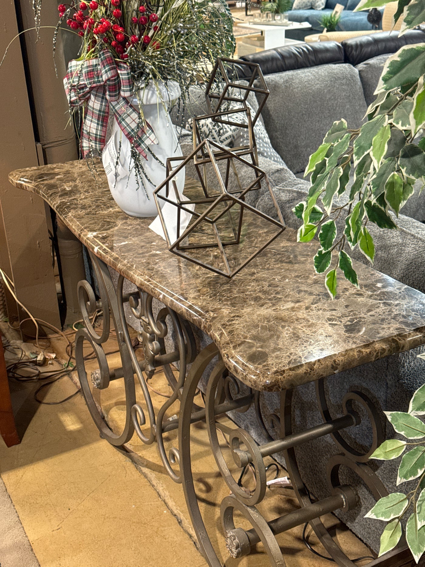 Marble Top With Wrought Iron Base Console Table