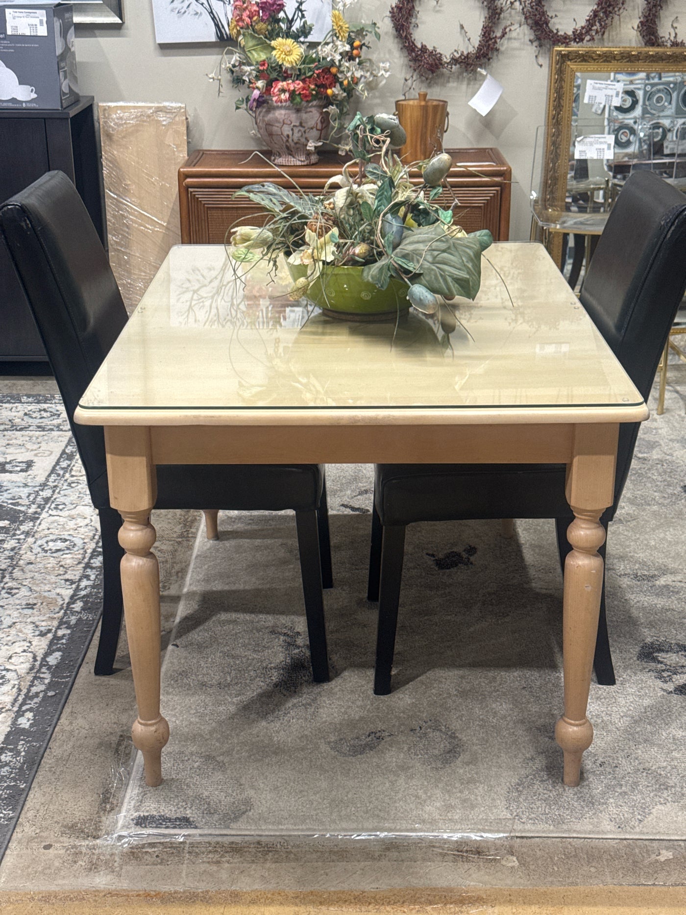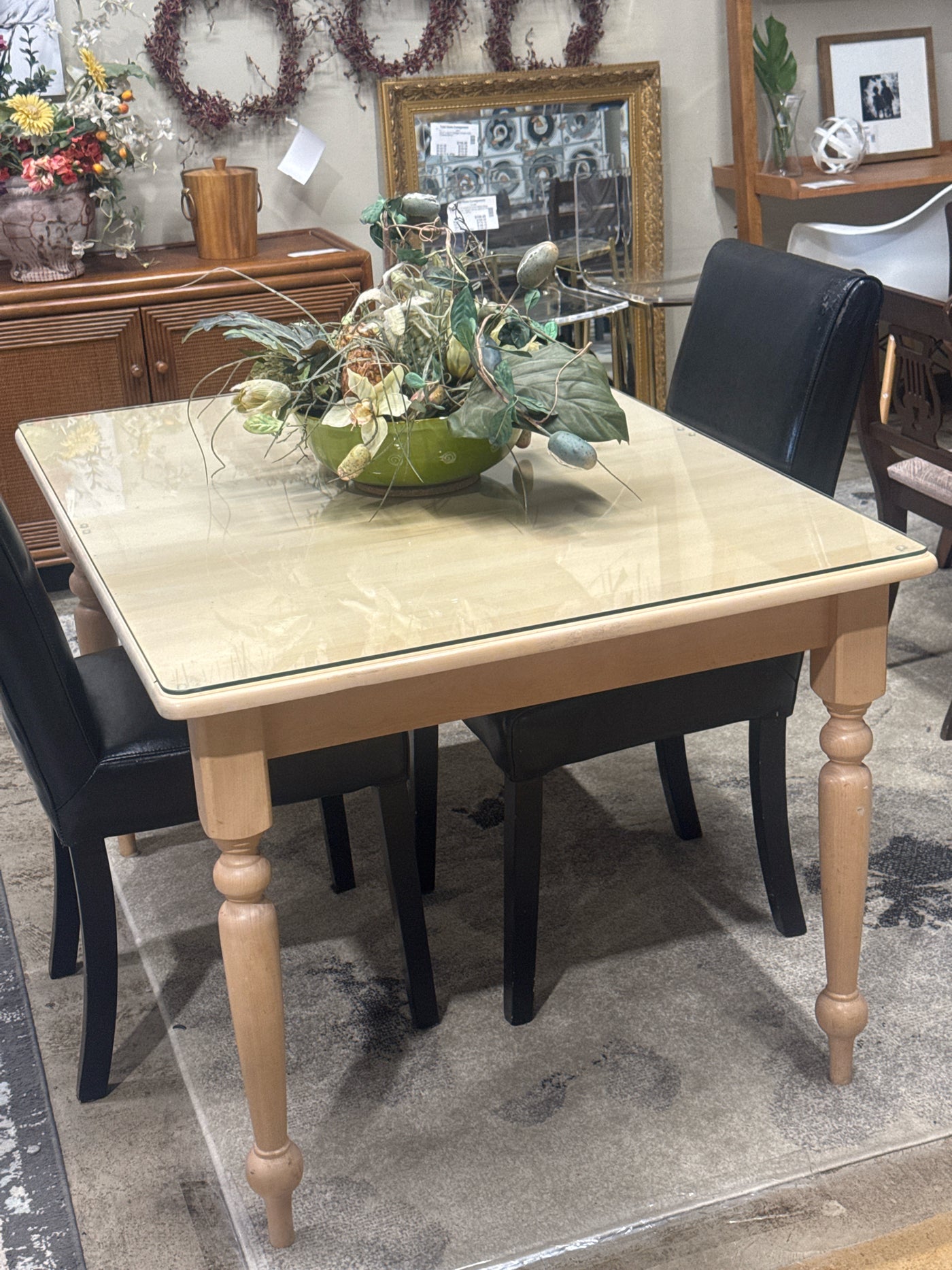 Solid Maple Dining Table With Glass Top & Leaf ( 48" x 60"L x 36"W x 30"H)